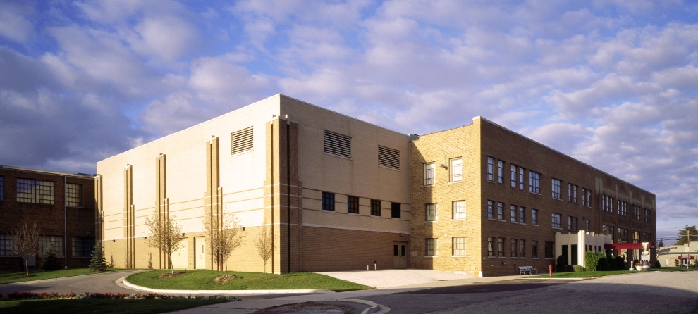 The addition to this Art Deco, historic automobile museum features a large banquet facility, Willennar Hall, which can accommodate up to 700 people. The Auburn Room, the Cord Room and the Duesenberg Room, along with new catering support facilities and a new entrance lobby, make the ACD Museum a highly popular, state-of-the-art meeting destination. The new stained-concrete floor pattern is an enlarged scale of the terrazzo floor pattern of the original Art Deco showroom. The addition also highlights a new 13,000 sf exhibit gallery on the third floor, the Pass Gallery, which features changing, special exhibits. A new archive library and educational room completes the addition with the new intermediate second floor that also gives access to the new administrative office area.