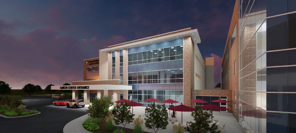 The Franciscan Health Lafayette East Cancer Center is a 3-story, 68,000 sq. ft. all-inclusive facility designed to consolidate and expand cancer services. Connected to the existing hospital, this multidisciplinary cancer care center will provide oncology infusion therapy, genetic counseling and testing, targeted immunotherapy and clinical trials, chemotherapy, specialty oncology clinics, and more.