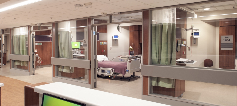 As one of the first projects of the $55 million dollar budget, this renovation brought ICU services back to the Randallia campus to eliminate the number of transfers to surrounding hospitals. The area had been used as an ICU in the past, but needed to be brought up to today’s standards through updated aesthetics and technology. This unit provides 12 ICU rooms, two of which could be used for isolation. The old patient care modules and gas columns were removed. A new decorative headwall was installed with in-wall gas outlets along with a new updated patient care module. Each of the rooms is equipped with new patient bed lifts along with state of the art EICU monitoring that allows each patient to communicate with a doctor remotely. Anti-microbial countertops and door hardware were installed as an effort to reduce the spread of germs throughout the unit.