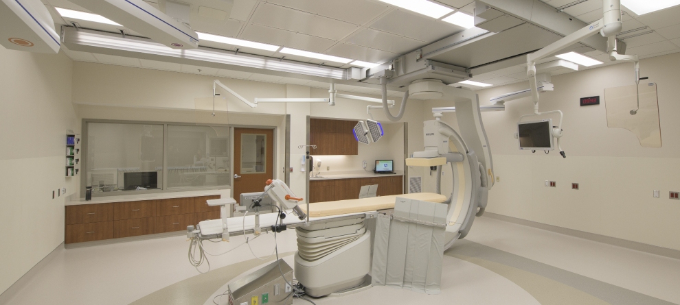 Cath and Interventional Radiology were new service lines that were brought into the procedural center. These share a room that encompasses the complexity of both. Lead lined with new booms and equipment, this room required the greatest amount of coordination between designers, clients, contractors, and vendors.