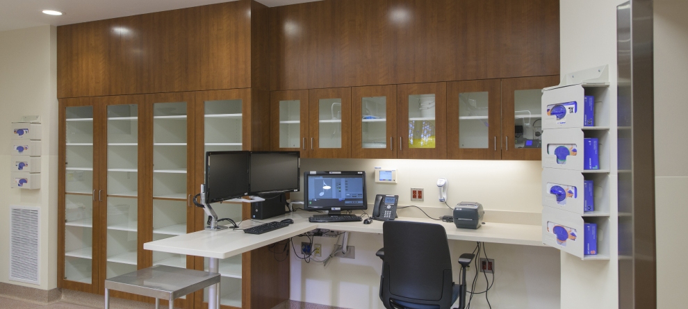 Endoscopy received a new suite that includes 2 procedure rooms, 2 shelled rooms for future growth, new pre-wash, wash and support spaces. Each of the Endo rooms has new booms, lighting, storage and work stations.