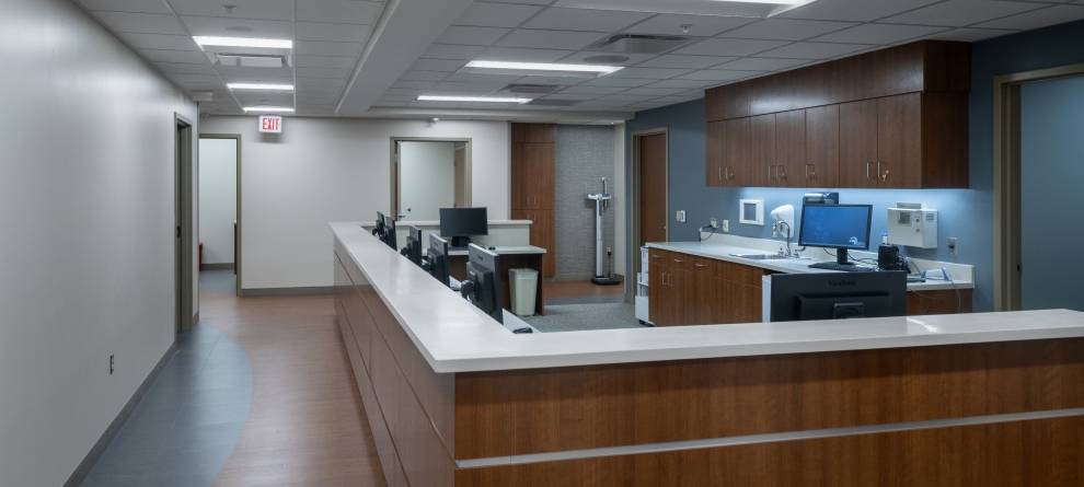 This was a renovation of an existing suite in the Women’s and Children’s medical office to accommodate a new pelvic health clinic. These specialty services will take place within five exam rooms and two procedure rooms. The higher end finishes are intended to create a spa-like atmosphere.