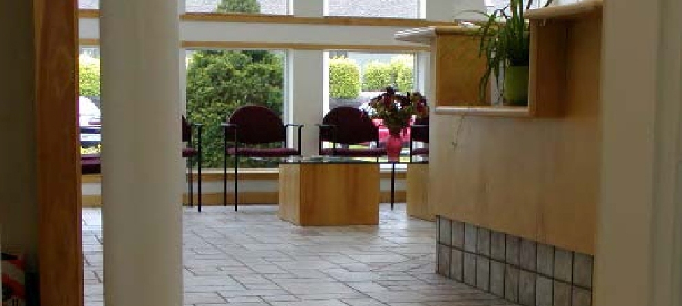 The 5,000 sf addition was designed to surround and screen the original two-story building that lacked visual interest and character. A new main entrance is angled to address the two legs of the new paved parking lot. Visitors are welcomed by a Doric column supported pergola and entrance canopy. The light-filled lobby features a clearstory tower-like roof that helps denote the entrance from the distance.
