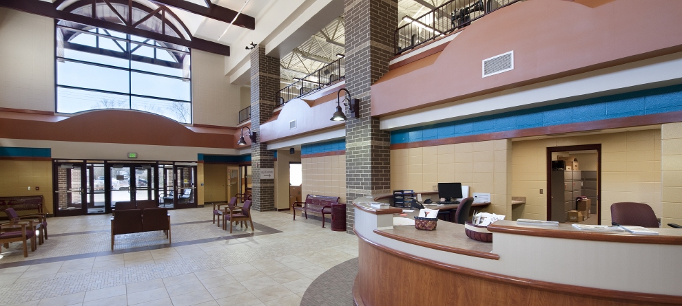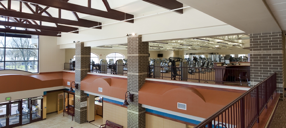 Servicing needs for both health and wellness, the recreational aspects include a variety of indoor sports including a 6-lane competitive pool with elevated seating, a family pool with zero depth entry and spray splash features, an indoor track, tennis, racquetball, and basketball courts, child watch and fitness center.  The hospital component is 5,550 sf of space for physical rehabilitation and therapy services.  The link between recreation and wellness allows for an ideal relationship between human and health services.