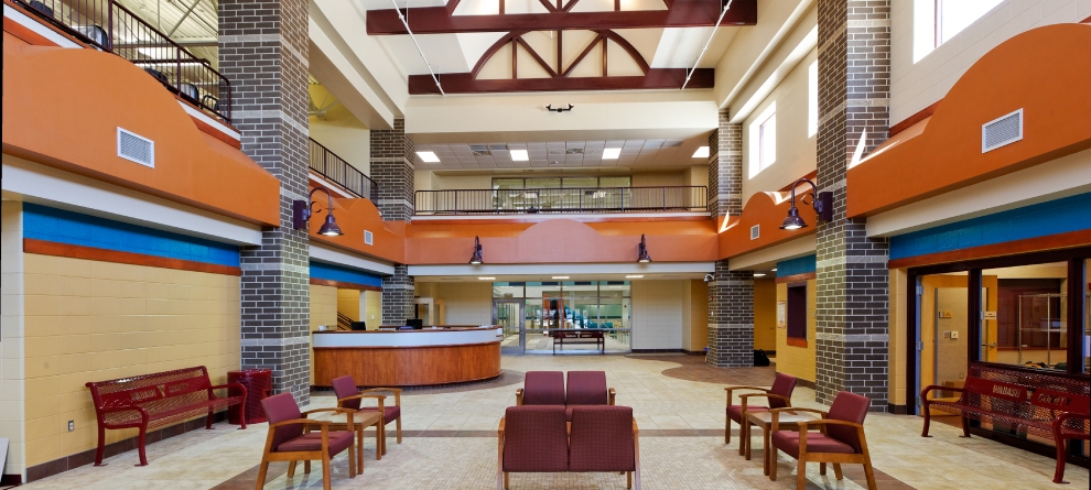 The Wabash YMCA is a two-story 76,000 sf family-focused recreational and wellness facility located south of downtown Wabash, Indiana and is a collaboration between Wabash County YMCA and Wabash County Hospital. The new facility offers multipurpose space including leased space and flexible gymnasiums that serve both the YMCA members, and also a wide range of community-based interests. The entry to the YMCA includes a vestibule and two-story atrium with a reception desk to greet new visitors and control access to the facility from non-members, a café complete with comfortable seating and two Wi-Fi lounges, and also serves as an entry point for the public to watch competitive swimming events.