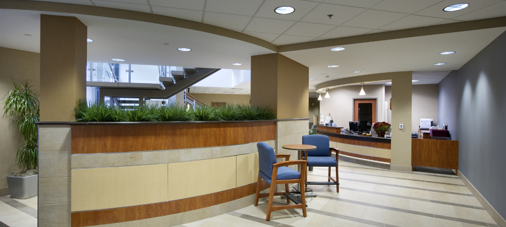 The 1,462 sf lobby addition seamlessly expands the existing waiting area of the Ortho Hospital lobby, and now allows patients & staff to safely travel to the adjoining medical office building. During construction, the entrances were consolidated and a new drive & canopy were created to eliminate confusion and enhance the patient’s experience.
