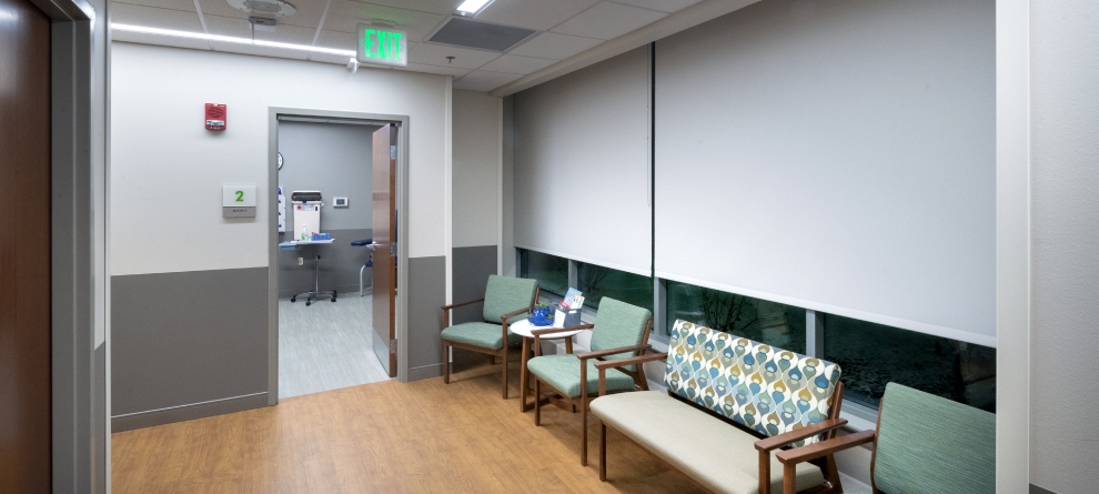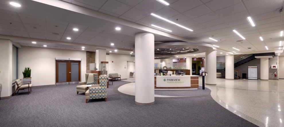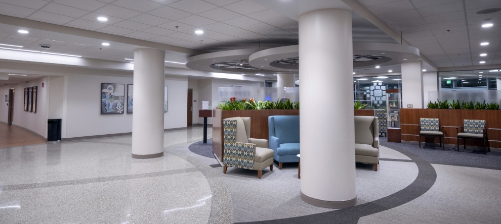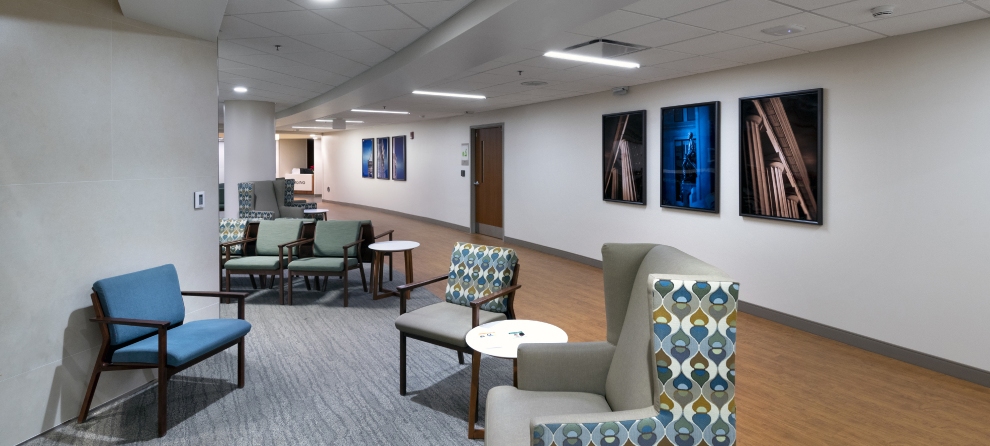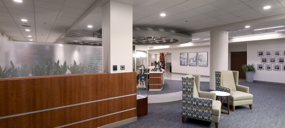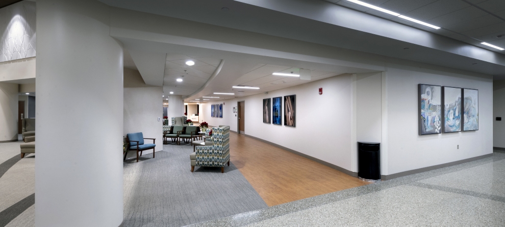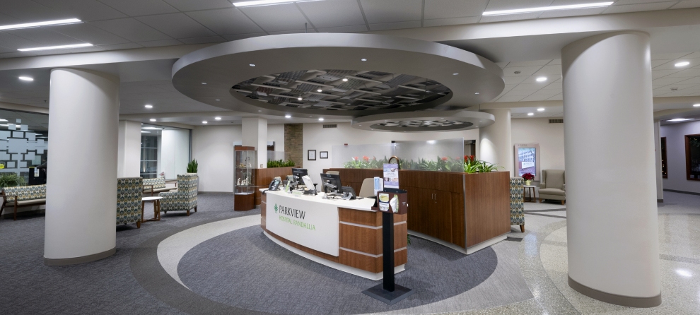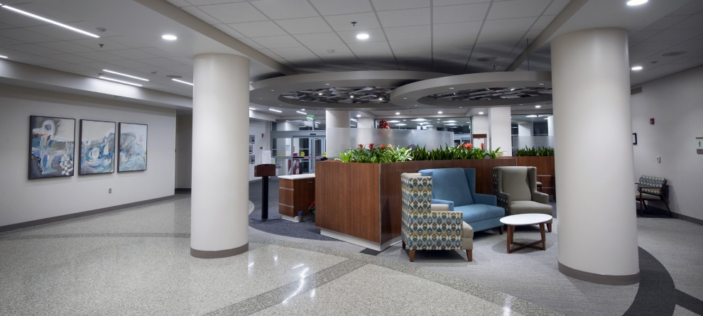 The main entry for Randallia Hospital was given a facelift while relocating and expanding Central Registration services. In the new suite, all consultation occurs within private rooms, and heightened security measures were taken for the cashiers. This multi-phased project livened up the existing waiting spaces on both first and second floors. As part of the project, an outpatient lab draw suite was located next to the main entry for quick, convenient access for patients.