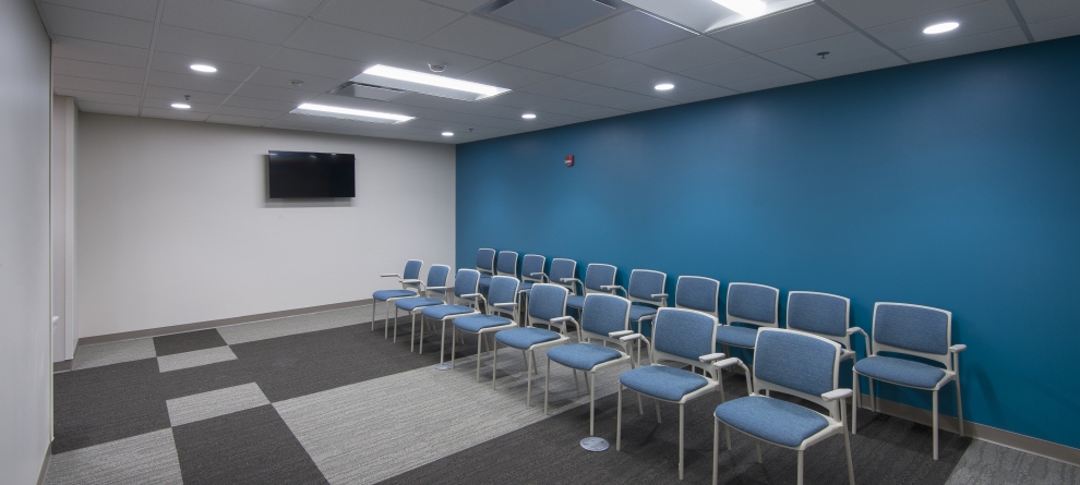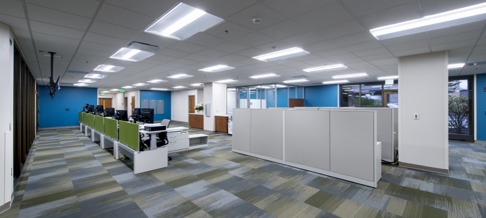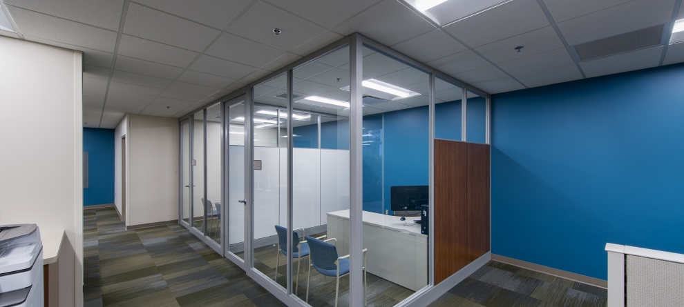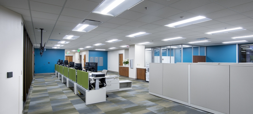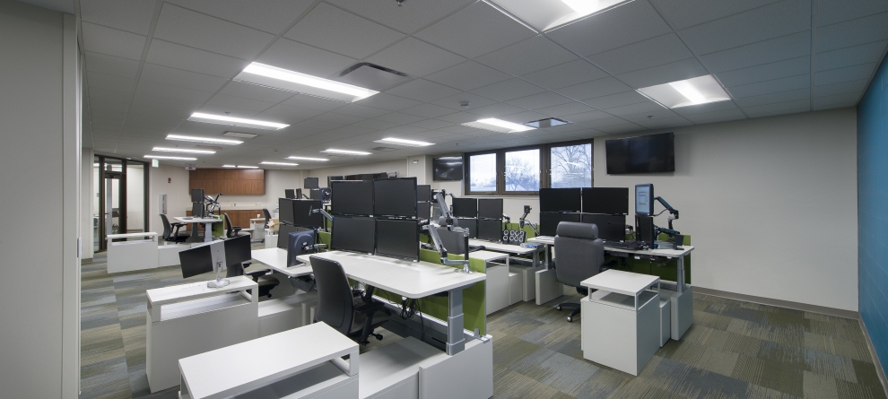 This project’s goal was to consolidate several emergency control services into one space on the ground floor of Parkview Randallia Hospital. They had been previously located in several buildings throughout the city. By bringing them together, they can communicate more efficiently and provide swifter patient care. Some of the services include Dispatch, Security, Bed Management, Behavioral Health, and Voice Services. Although it is on ground floor, natural daylight is still provided through clerestory and storefront window systems. To minimize noise but maximize visual acuity, a glass separation wall was placed between Dispatch and the remaining areas. White noise machines were also strategically located throughout the space. The open area concept was accentuated by new sit-to-stand furniture for maximum staff comfort. Surrounding the main workspace is a new conference room, updated restrooms, IT room, break room and storage.
