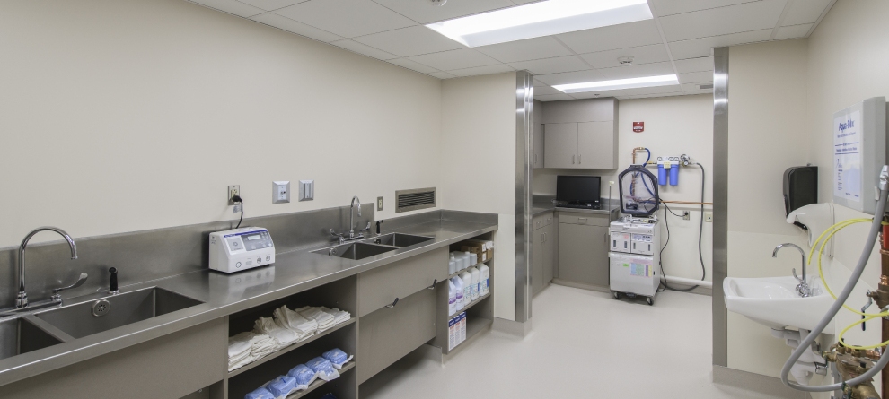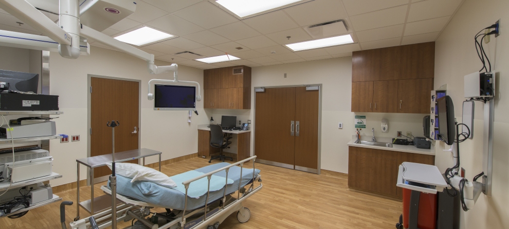Endoscopy received a new suite that includes 2 procedure rooms, 2 shelled rooms for future growth, new pre-wash, wash and support spaces. Each of the Endo rooms has new booms, lighting, storage and work stations.