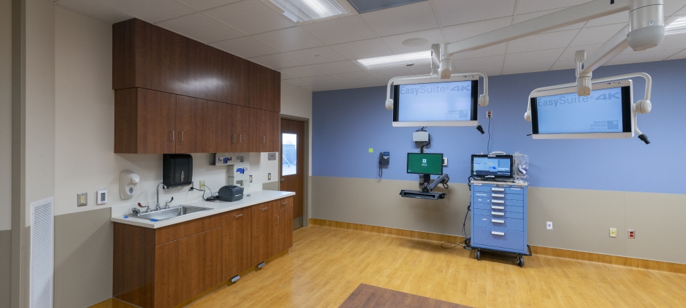 A multi-phased renovation of an existing inpatient endoscopy suite on second floor of the hospital. The project added two additional procedure rooms capable of bronchoscopies with a specimen examination room shared between the two. An additional pre/post bay was added while updating the existing two bays as well as reconfiguration of support space. Several renovations took place prior to this project to create available space.