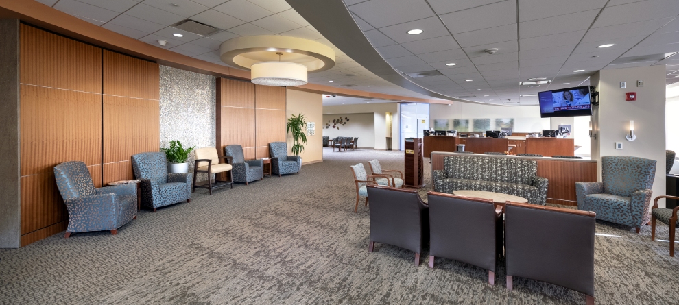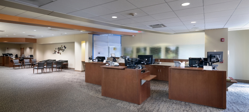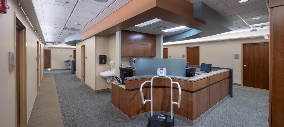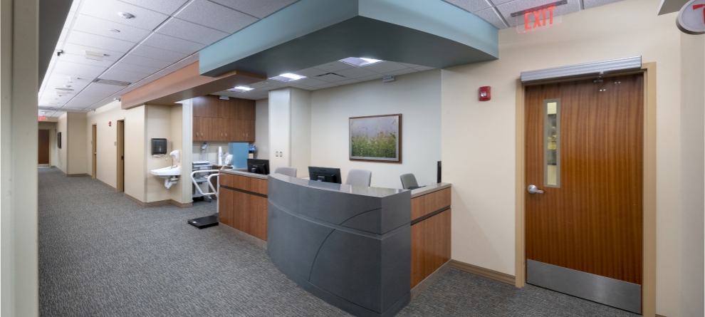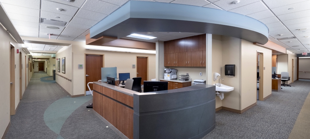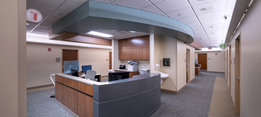 A multi-phased renovation of an existing outpatient clinic on first and fifth floor. The project involved building out shell space on fifth floor for displaced administrative functions and then providing an additional 14 exam rooms and support space on first floor. The expansion necessitated a refresh of the reception and waiting areas.